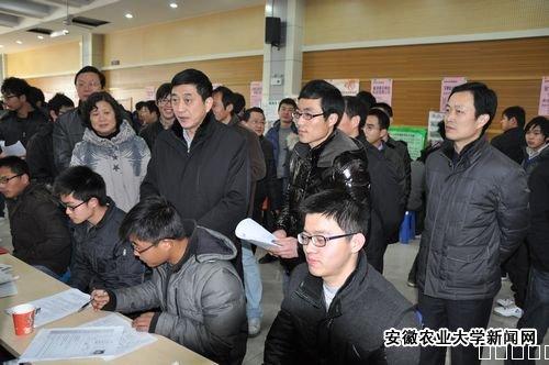 2月19日上午,由校招生就业处、农学院、园艺学院共同举办的农科类2012届毕业生专场招聘会在我校餐饮中心四楼多功能厅举行。校长宛晓春、校党委副书记王华丽、招生就业处负责同志及两院党政领导到招聘会现场指导工作,近600名2012届农科类专业毕业生参加了招聘会。