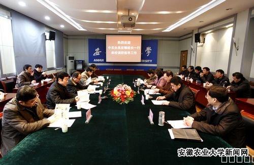 2月17日,中央农村工作领导小组办公室二组组长吴宏耀、副巡视员陈良彪、中央政研室副处长曹利群一行在省政府副秘书长、省扶贫办主任刘奇,省农委副主任陈卫东,省农委办公室主任胡桂芳等人的陪同下来我校调研指导工作。