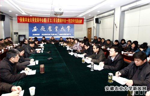 校党委书记赵良庆主持会议,并传达了中央一号文件精神,重点解读了“依靠科技创新驱动,引领支撑现代农业建设”、“加强教育科技培训,全面造就新型农业农村人才队伍”等和高等农业院校发展有关的内容。他指出,文件紧紧围绕保障农产品供给,突出强化农业科技创新,提出了一系列理论性、指导性强的新观点、新论述,出台了一系列含金量高、操作性强的新政策、新举措。