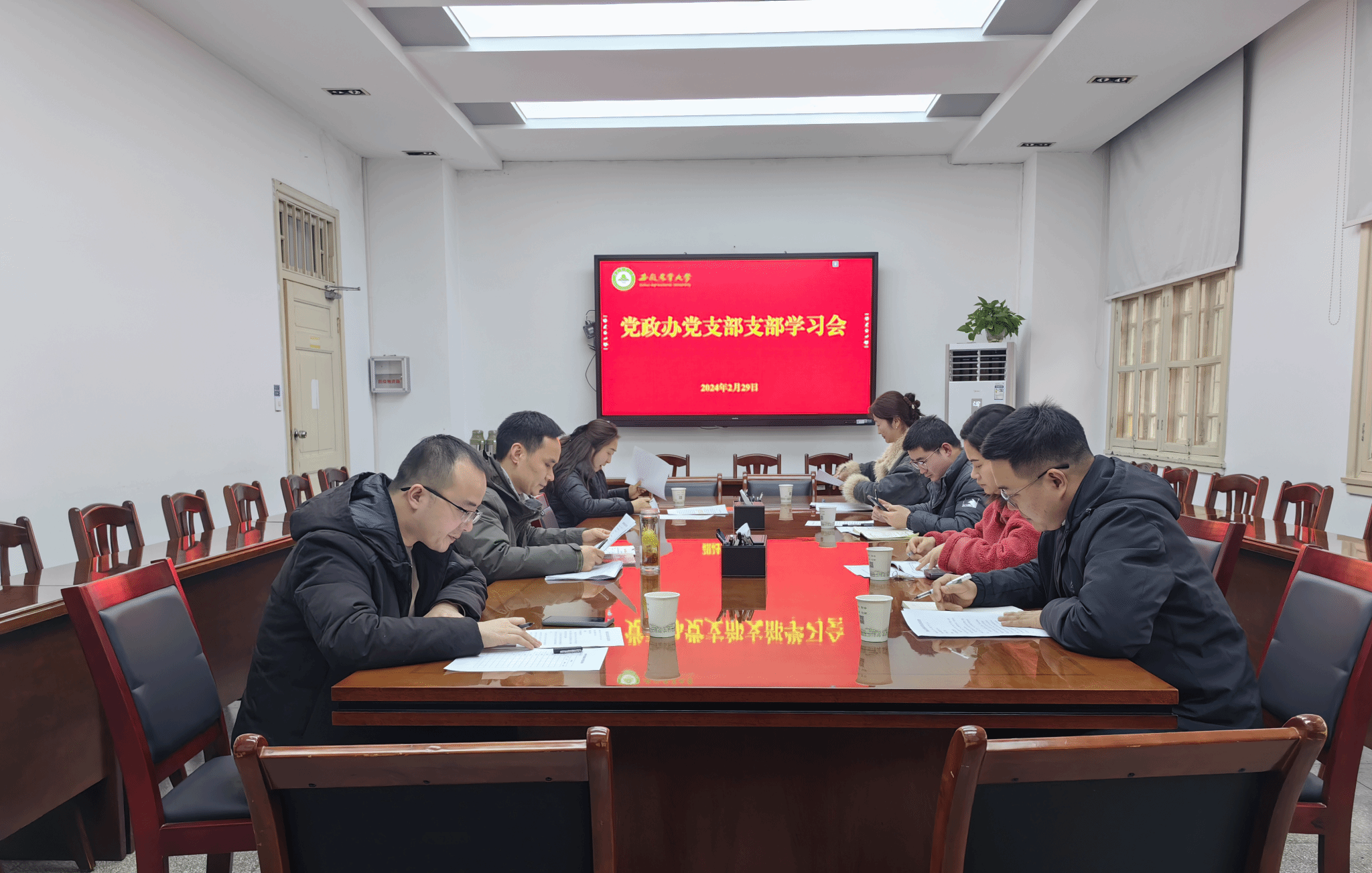 2月29日,党政办党支部在第一会议室组织开展“一月一主题”理论学习会,会议由支部副书记张立付主持。