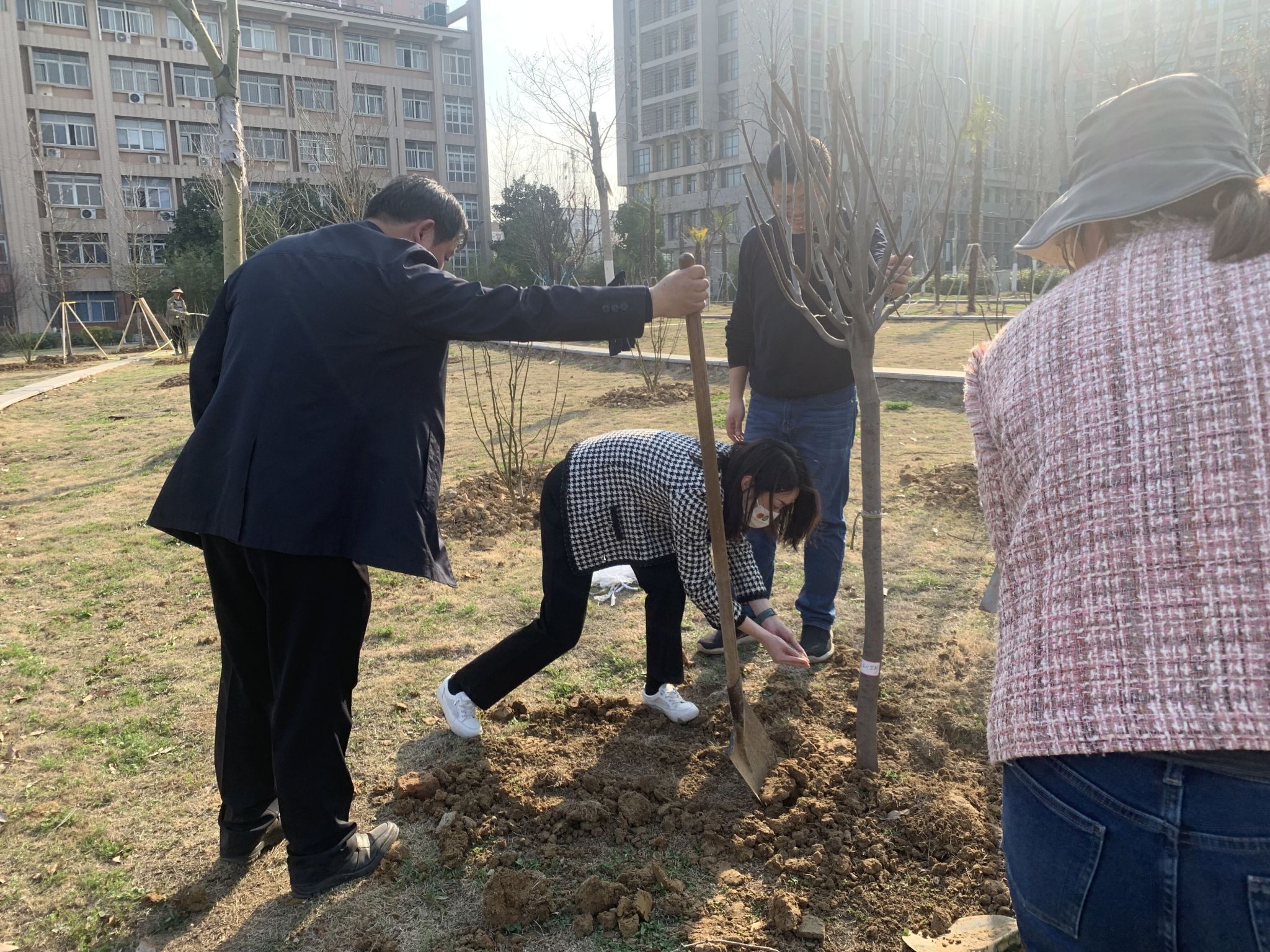 3月7日下午,在第45个植树节即将到来之际,党政办党支部和团委党支部全体成员来到智慧广场西部,开展了一场共建校园义务植树主题党日活动。机关党委书记刘凯到场指导并参与活动。